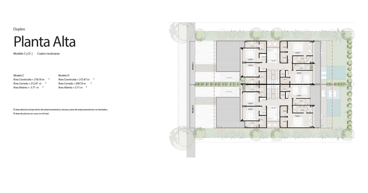 Las casas de Bosco ofrecen más de 550 m² de construcción, distribuidos en amplios espacios con terrazas abiertas, jardines privados y piscina. Disponibles en modelos de 3 y 4 recámaras + family studio, cada residencia ha sido concebida para combinar elegancia, funcionalidad y confort.
