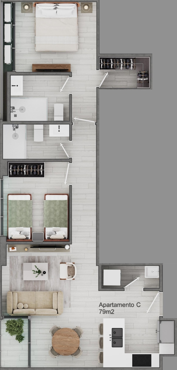 Perfecto para parejas o profesionales que valoran el confort y la eficiencia. Cuenta con dos baños completos, cocina abierta con barra desayunadora y un acogedor balcón. Vivir en AURA significa disfrutar de espacios modernos que reflejan la energía del barrio de Obarrio, rodeado de gastronomía, entretenimiento y la vibrante vida citadina de Pan