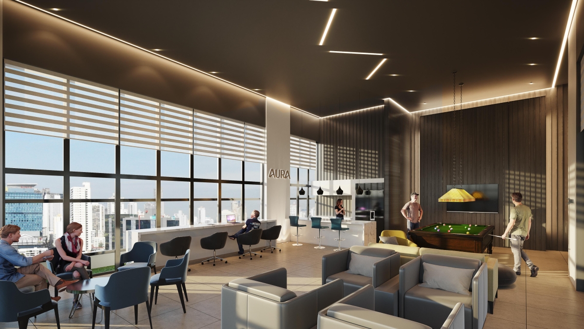 Perfecto para parejas o profesionales que valoran el confort y la eficiencia. Cuenta con dos baños completos, cocina abierta con barra desayunadora y un acogedor balcón. Vivir en AURA significa disfrutar de espacios modernos que reflejan la energía del barrio de Obarrio, rodeado de gastronomía, entretenimiento y la vibrante vida citadina de Panamá.