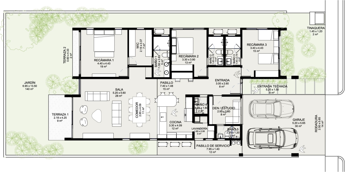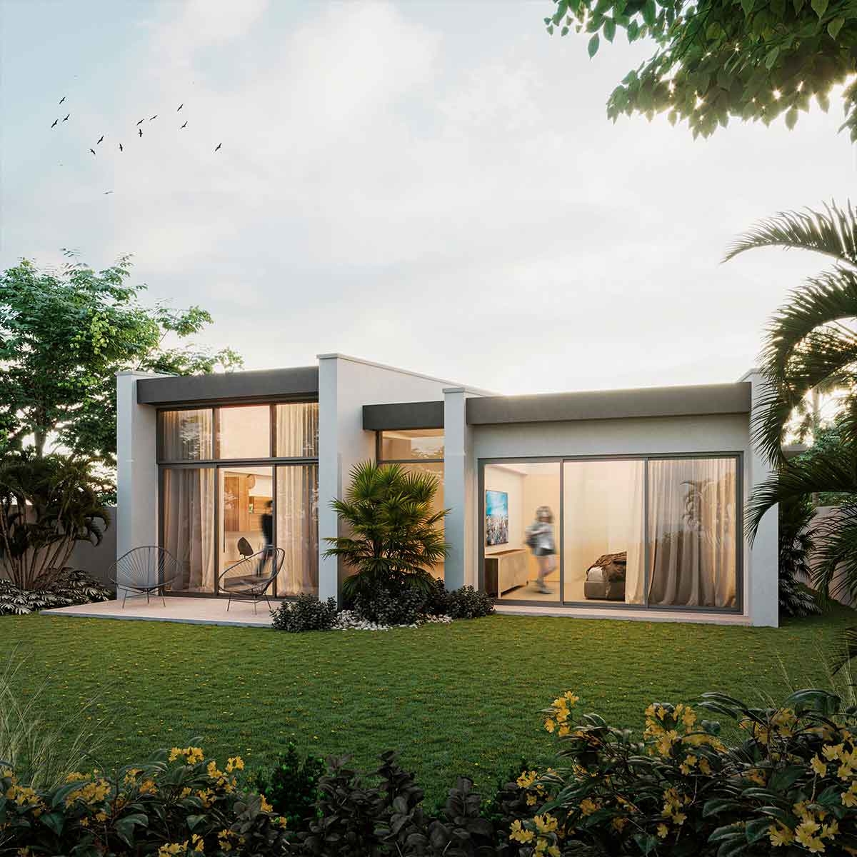 Casa en el área de Barrio Alto Panamá. Modelo Perla: Estacionamientos para 2 autos Sala y comedor con vistas al patio Medio baño de visitas Cocina semi-abierta con desayunador Lavandería Estudio o CBE Recámara principal con walk-in closet y amplio baño Dos (2) recámaras secundarias cada una con baño y closet Linen closet (opcional) Altura d