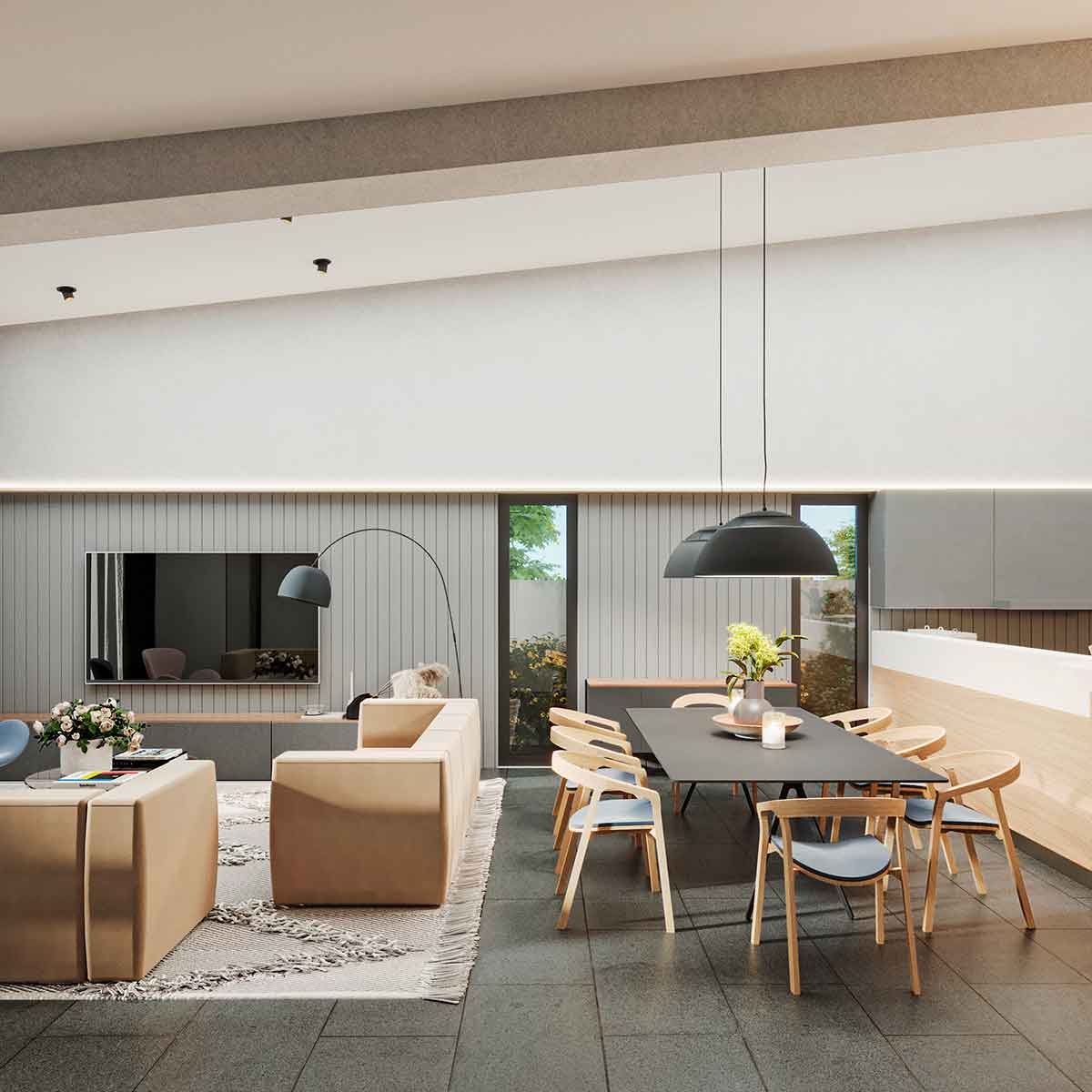 Casa en el área de Barrio Alto Panamá. Modelo Perla: Estacionamientos para 2 autos Sala y comedor con vistas al patio Medio baño de visitas Cocina semi-abierta con desayunador Lavandería Estudio o CBE Recámara principal con walk-in closet y amplio baño Dos (2) recámaras secundarias cada una con baño y closet Linen closet (opcional) Altura de 4.20 metros en la sala comedor Terraza Abierta
